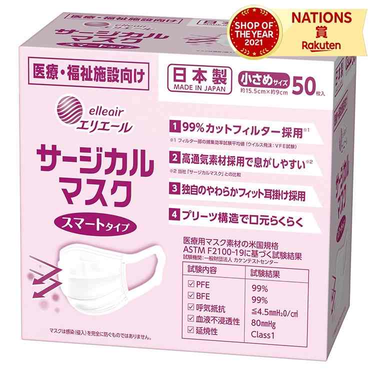 エリエール サージカルマスクスマートタイプ小さめタイプ50枚入 エリエール サージカルマスク スマートタイプ 小さめサイズ...