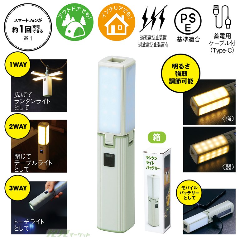 3WAYランタン&トーチライト付きモバイルバッテリー3000