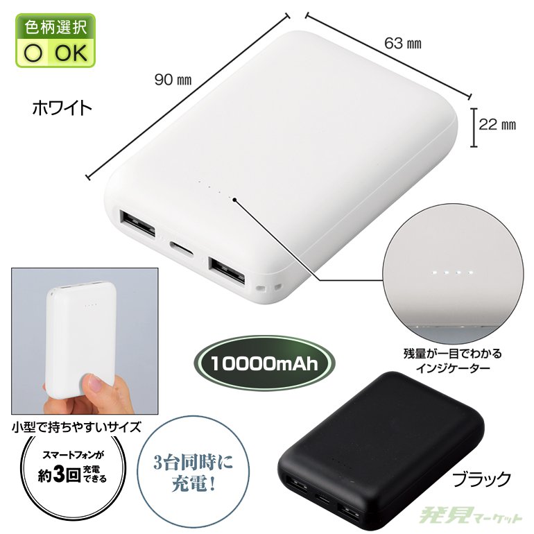 急速充電モバイルバッテリー10000(大容量&コンパクト)(色選択)