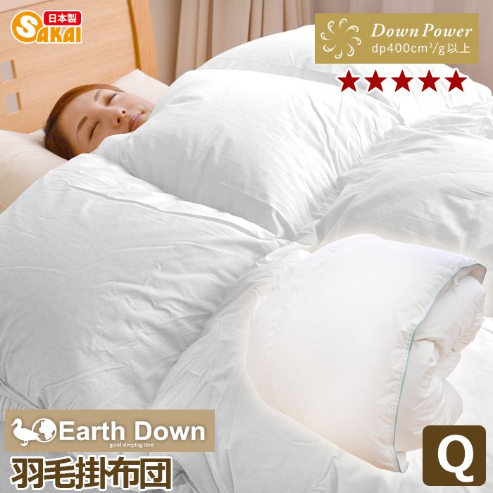 【日本製】アースダウン無地羽毛掛け布団クィーンサイズホワイトダウン93%(TTCRPDQ)【羽毛布団クィーン羽毛ふとんクイーン掛布...