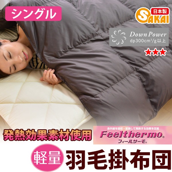 発熱素材フィールサーモ羽毛掛け布団シングルサイズ羽毛布団シングル【布団ダウンシングルかけぶとんかけ布団ふとん羽毛掛布団】【日本製掛...