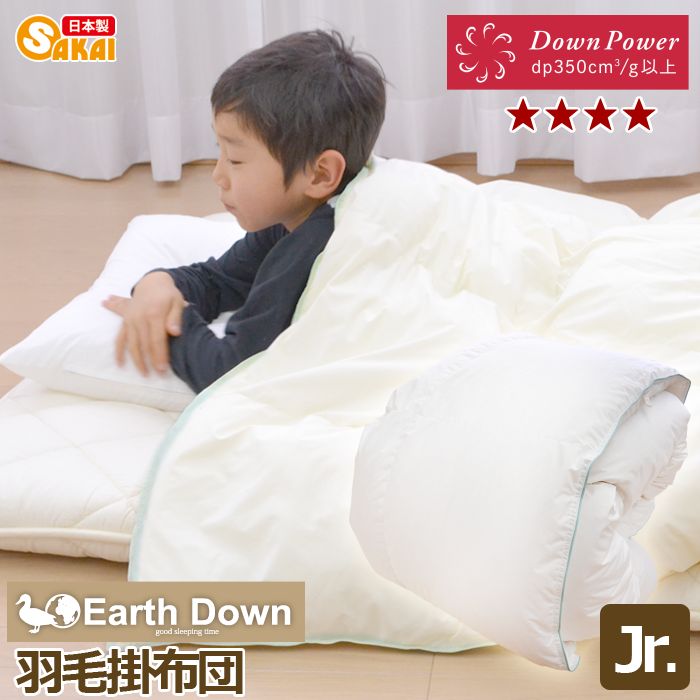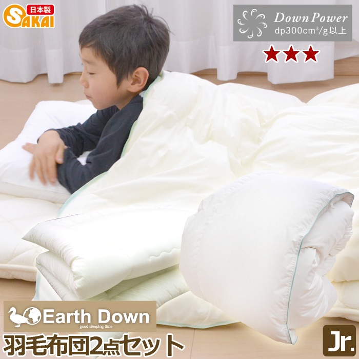 【受注生産】【日本製】アースダウン【無地】子供用布団セットジュニアサイズナチュラル羽毛掛け布団(TC)・防ダニ抗菌防臭敷布団【子供...
