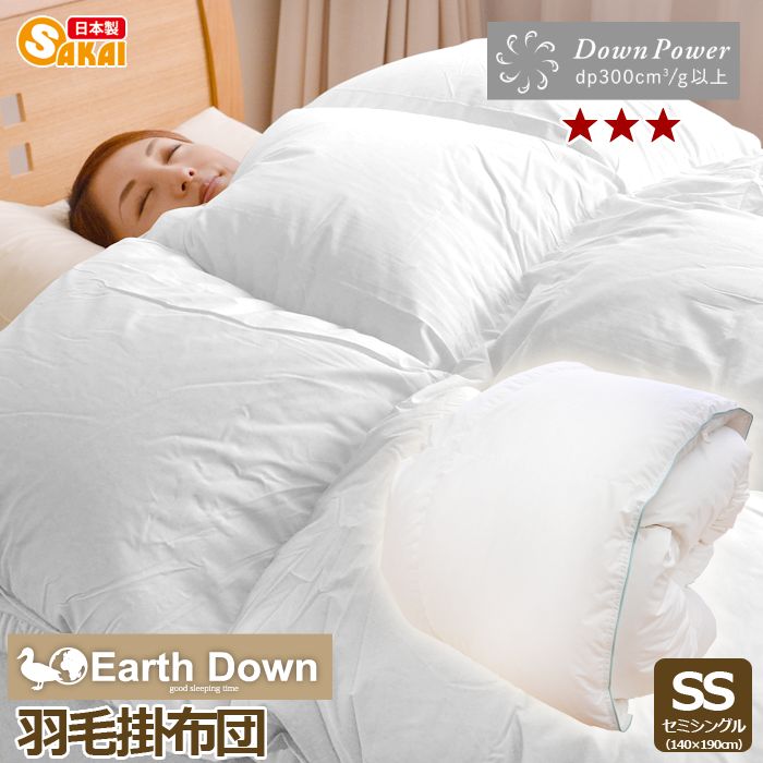 【受注生産】【日本製】アースダウン無地ナチュラル羽毛掛け布団セミシングルサイズ介護・2段ベッド用(TCNDSS)【羽毛布団羽毛ふと...