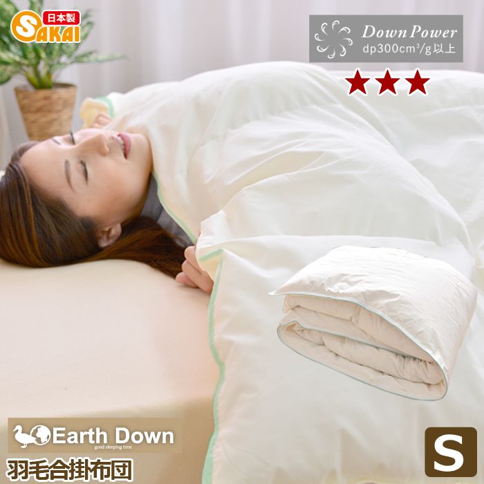 【日本製】アースダウン 無地 羽毛掛け布団 シングルサイズ ホワイトダウン90%(TTCEHDS) 【羽毛布団 シングル 掛布...