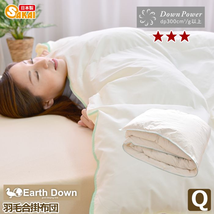 【受注生産】【日本製】アースダウン無地ナチュラル羽毛肌掛け布団/ダウンケットクイーンサイズ(TCNDQH)【国産羽毛布団羽毛ふとん...