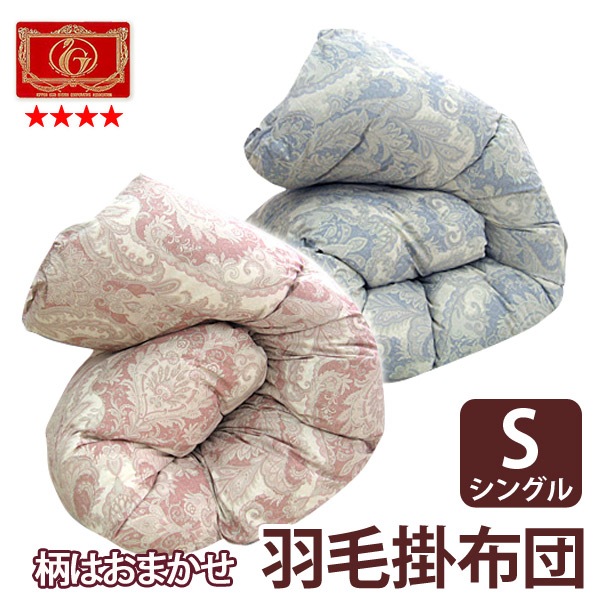 【受注生産】【日本製】羽毛肌掛け布団ダウンケットシングルサイズ(柄おまかせ)【羽毛布団シングル羽毛ふとん掛布団プレゼント羽毛秋かけ...