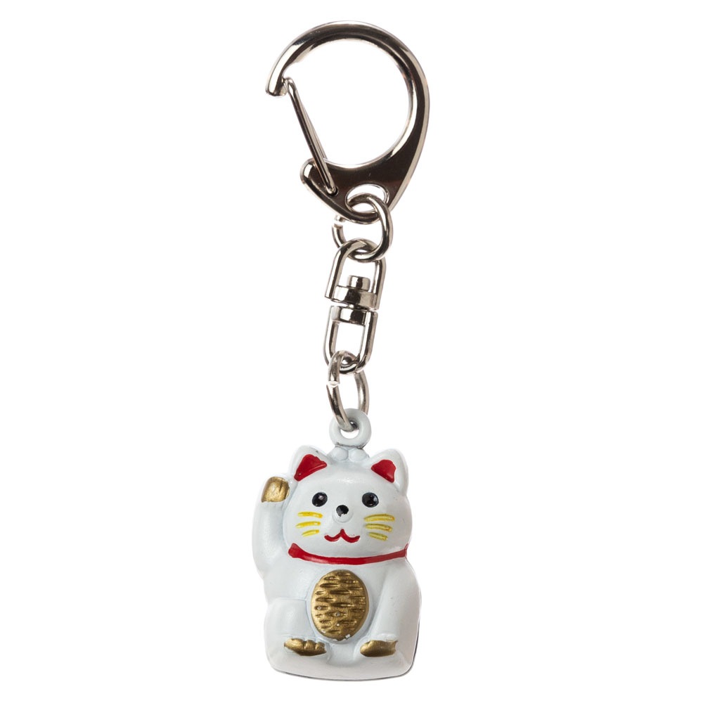 招き猫キーホルダー 白 鈴タイプ お金を招く右手上げ 金運上昇の小さな縁起物 バッグや財布にも