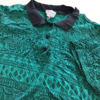 アメリカ古着 半袖ポロシャツ カットソー 送料無料 レディース L程度/緑系 総柄 アメカジ 直輸入 USA古着 業販 古着卸 A...