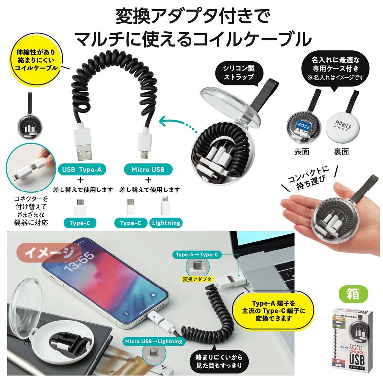 ボトル入りUSB充電ケーブル(カラビナ付き)
