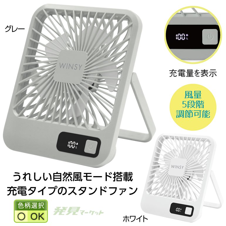 ウィンジーUSB充電式スクエアスタンドファン (色選択)