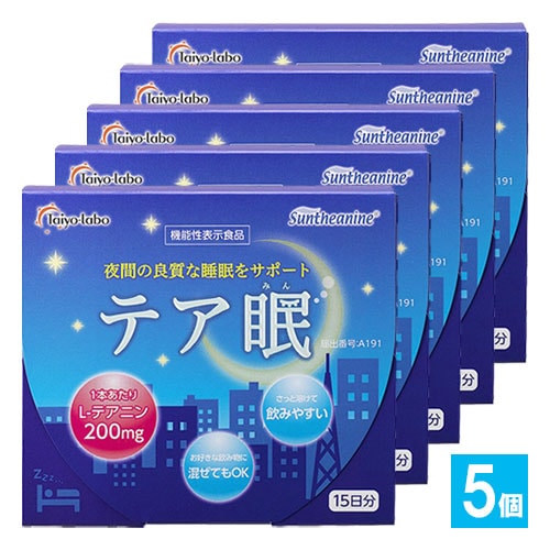 【機能性表示食品】テア眠 15包×5個セット【タイヨーラボ】夜間の良質な睡眠をサポート 1本あたりL-テアニン200mg配合 さっ...