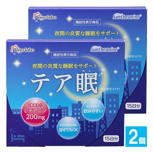 【機能性表示食品】テア眠 15包×2個セット【タイヨーラボ】夜間の良質な睡眠をサポート 1本あたりL-テアニン200mg配合 さっ...