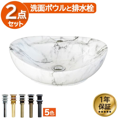 洗面ボウル 陶器 オーバル 石目柄 オンカウンター 置き型 ベッセルシンク 置き型 オーバーフロー無し マーブルホワイト 幅41×...