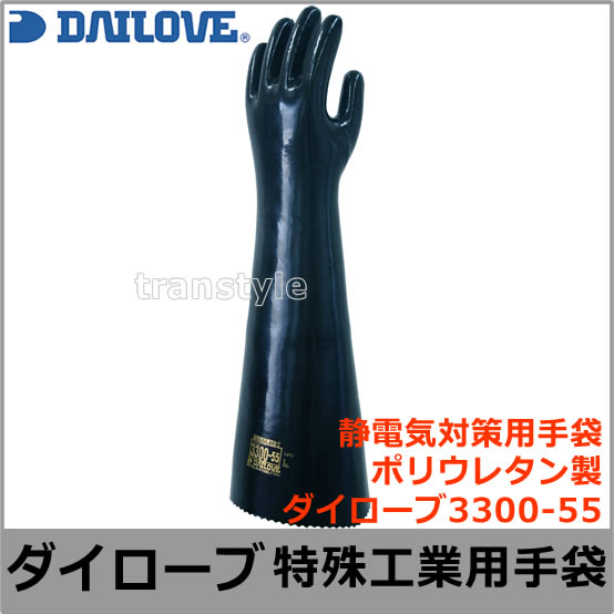 ダイローブ 静電気対策強力溶剤用手袋 3300-55 裏地有 ロング55cm ノンブリードタイプ ポリウレタン製 (1双)日本製【...