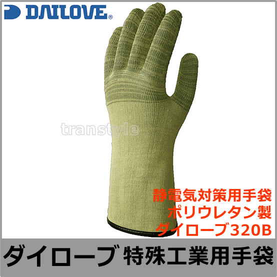 ダイローブ 静電気対策溶剤用ソフト手袋 320B 裏地無 ポリウレタン製 (1双)日本製【シンナー/作業用/工場/溶剤/薬品/DA...