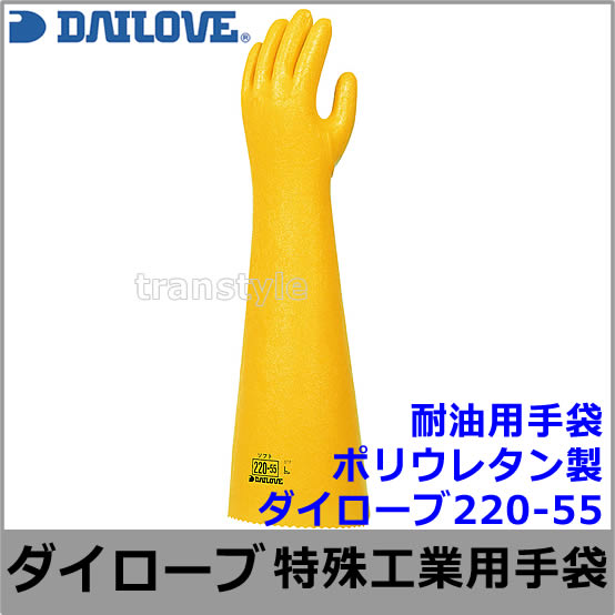 ダイローブ 耐油用ソフト手袋 220-55 裏地有 ロング55cm シワ状滑止タイプ ポリウレタン製 (1双)日本製【作業用/工場...