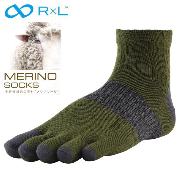 RxL アールエル 武田レッグウェアー 5本指メリノウールランニングソックス M-MULTI MWS5002 グリーン/チャコール...