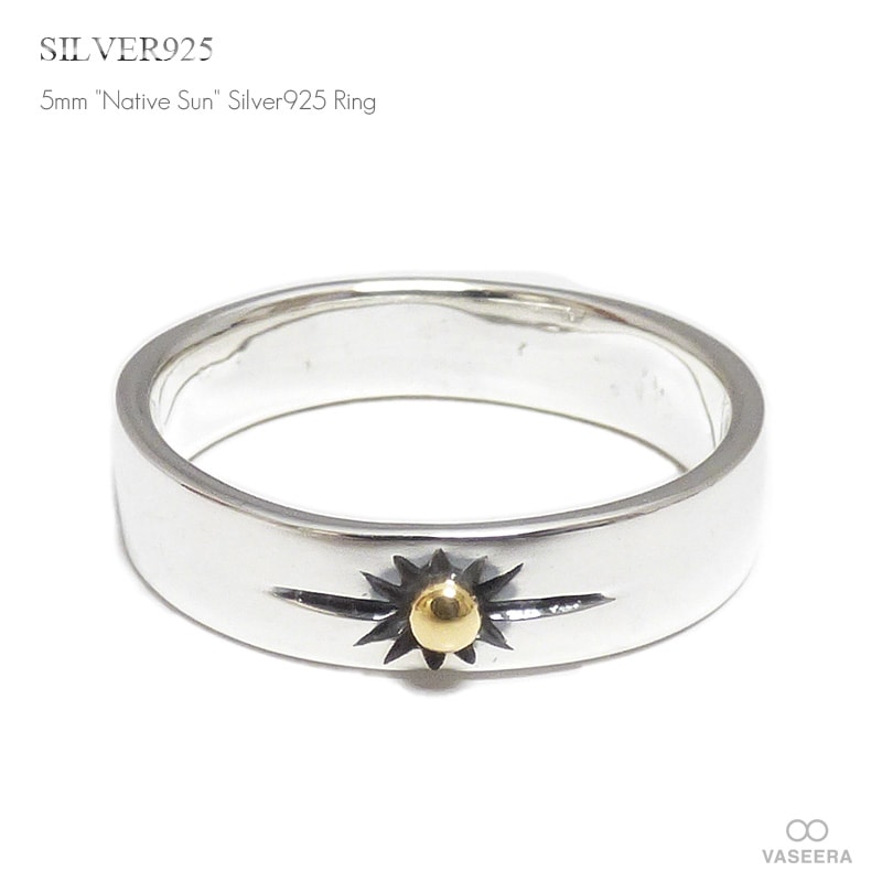 ネイティブ・サン(太陽/SUN) ゴールドポイント 5mm幅 シルバーリング 【シルバー925/SILVER925 /指輪】
