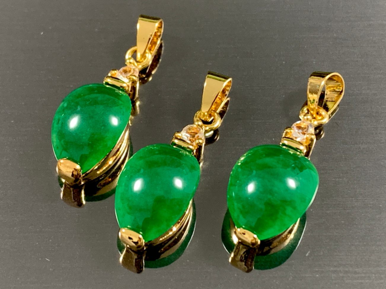 限定入荷!★繁栄・成功・健康の石として幅広い年代に定番人気★天然石/翡翠(ひすい・ジェイド・jade)ペンダントトップ/ゴールドカ...
