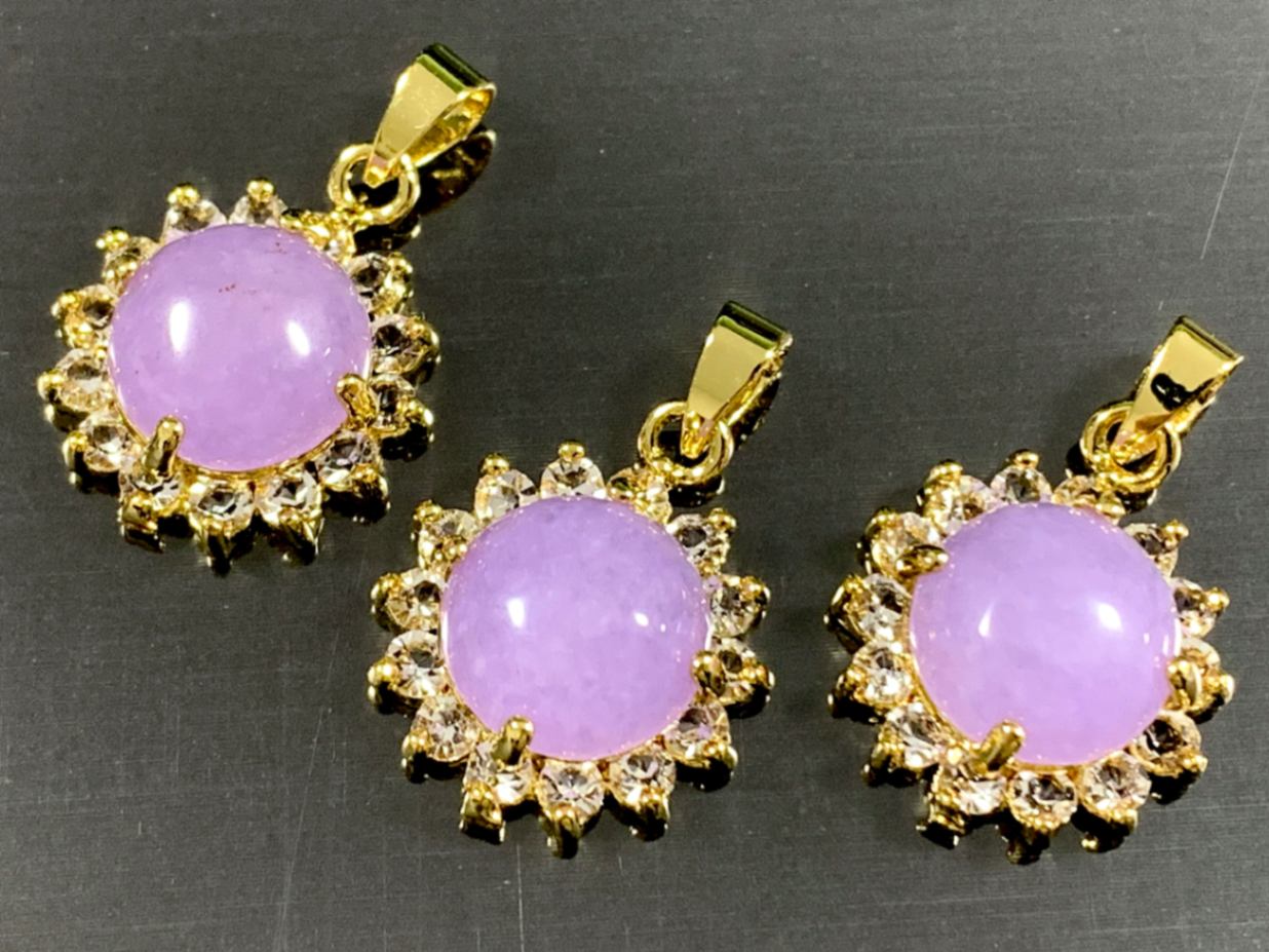 限定入荷!★繁栄・成功・健康の石として幅広い年代に定番人気★天然石/紫翡翠(ひすい・ジェイド・jade)ペンダントトップ/ゴールド...