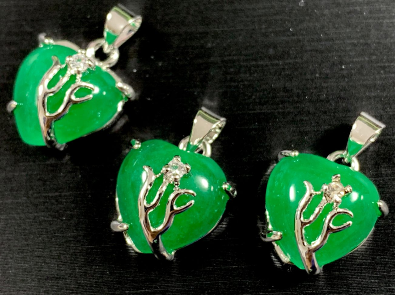 限定入荷!★繁栄・成功・健康の石として幅広い年代に定番人気★天然石/翡翠(ひすい)ペンダントトップ/ハート/シルバーカラー/1個【...