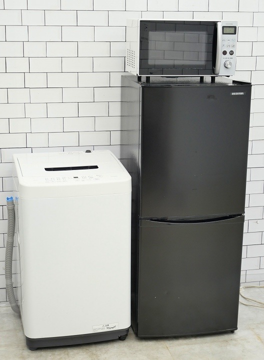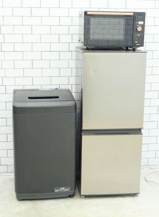 135L、5kg/23年、23年、20年製/アクア、アイリスオーヤマ、山善製/(冷蔵庫、洗濯機、オーブンレンジ)中古家電3点セット