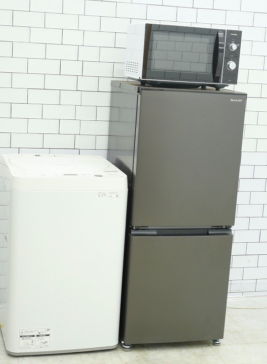 152L、5.5kg/22年、22年、23年製/シャープ、シャープ、東芝製/(冷蔵庫、洗濯機、フラット型電子レンジ)中古家電3点セ...