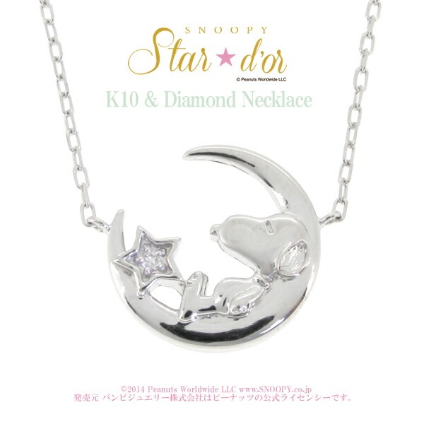 Snoopy スヌーピー 三日月 ダイヤモンド K10 ホワイトゴールド ネックレス ペンダント 公式 グッズ ジュエリー レディ...