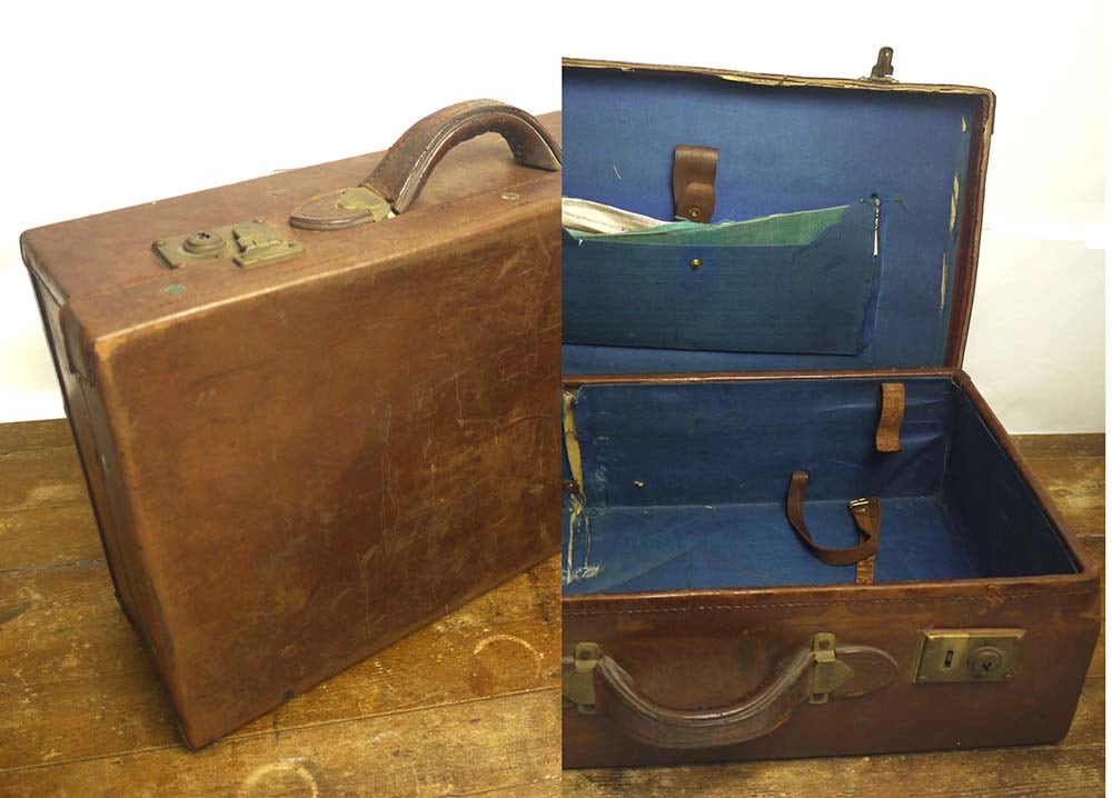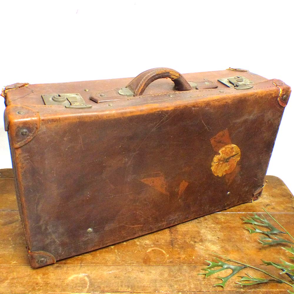 ヴィンテージ レザートランク / オールドスーツケース / ウェルカムボード (茶 )【中古】