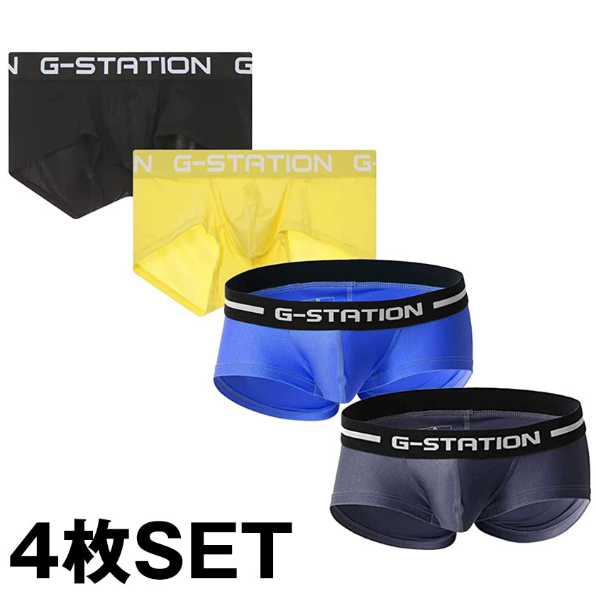 【4枚セット】G-Station/ジーステーション 水着系生地使用 ぴっちりフィット マキシマム3D立体ポーチ ボクサーパンツ 男...
