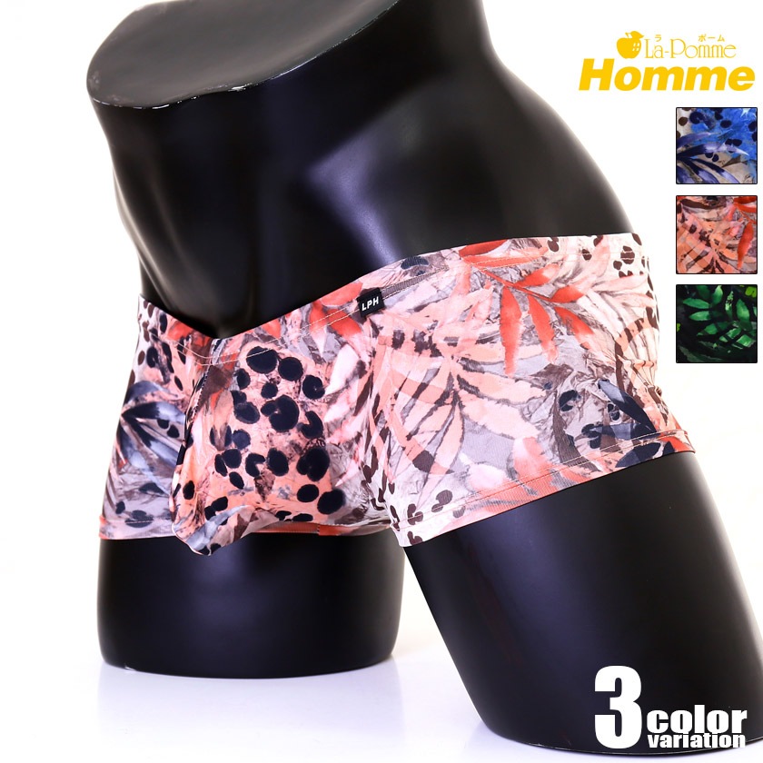 メンズボクサー【La-PommeHomme/ラポーム・オム】花柄プリント 立体縫製 ショート丈 ボクサーパンツ 下着 アンダーウェ...