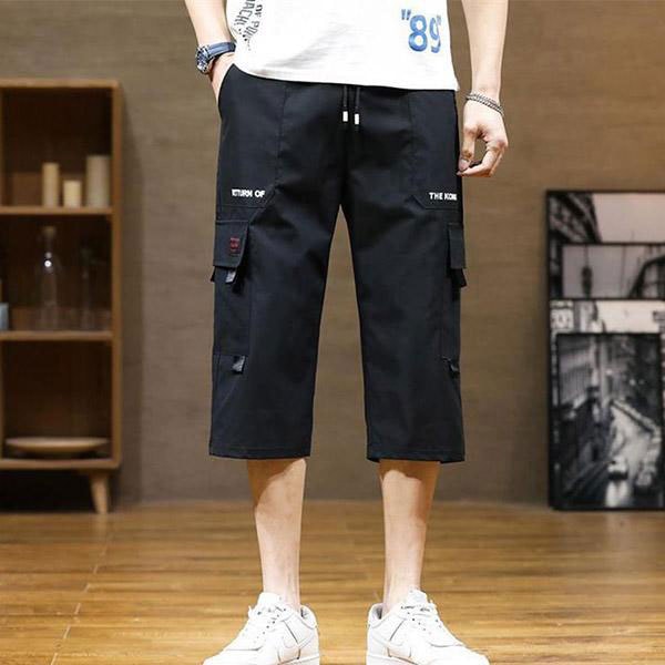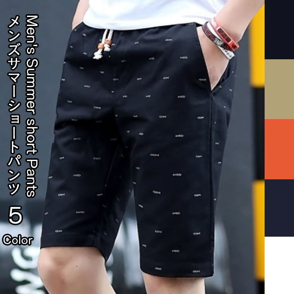 メンズ ショートパンツ 7分丈 英字プリント入り クロップドパンツ カーゴパンツ ハーフパンツ ポケット付き デイリー アウトドア...