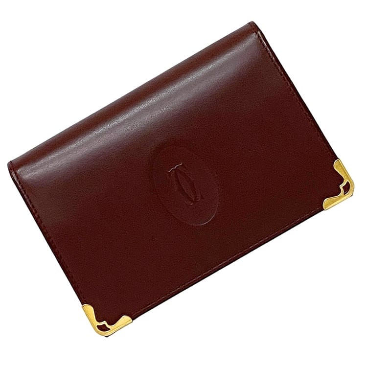 カルティエ 名刺入れ f-22240 ボルドー マスト 美品 レザー 中古 Cartier フラップ ロゴ カードケース ヴィン...