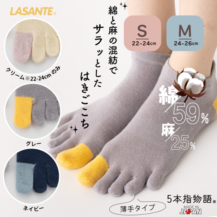 綿麻スニーカー 薄手 S(22-24cm) M(24-26cm) 【 60862 】 五本指靴下