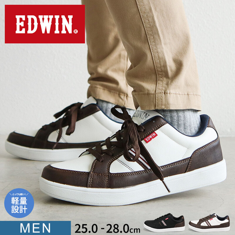 エドウィン スニーカー メンズ 軽い ローカット 履きやすい 疲れにくい おしゃれ シューズ 靴 黒 ブラック ホワイトブラウン ...