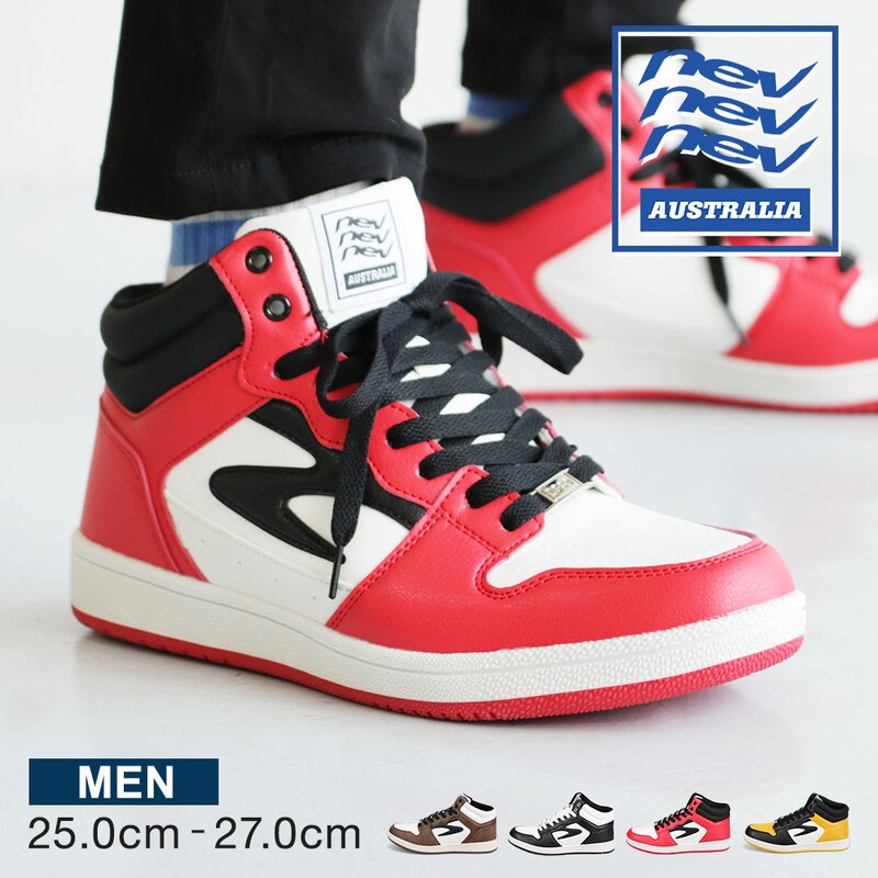 nev スニーカー メンズ ハイカット おしゃれ かっこいい 靴 シューズ 白 ホワイト 黒 ブラック レッド イエロー ブラウン...