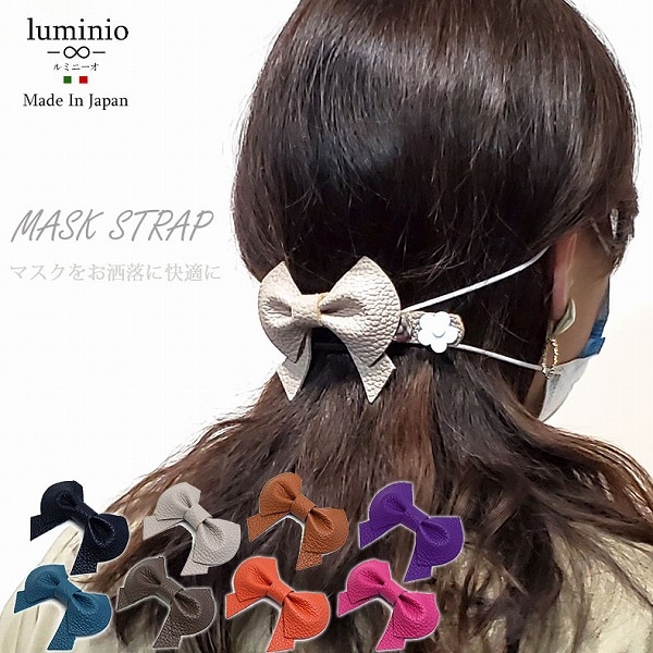 マスク ストラップ 【返品不可商品】 耳 おしゃれ 本革 補助 バンド ガード アクセサリー リボン レザー 日本製 ルミニーオ ...