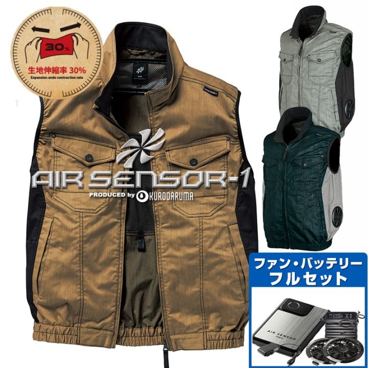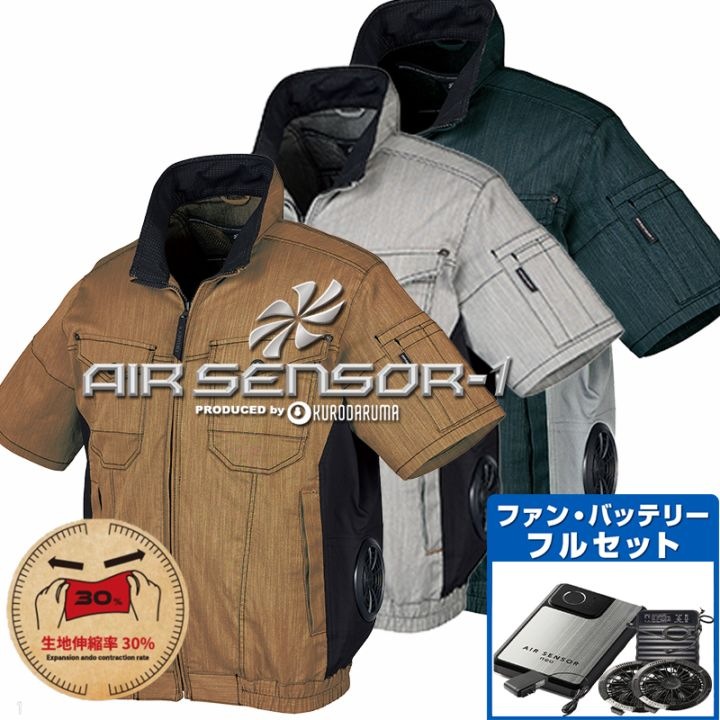 ファン付き半袖ジャンパー 268931 KURODARUMA フルセット サイドファン 電動ファン付きウェア 軽量 撥水 遮熱 ...
