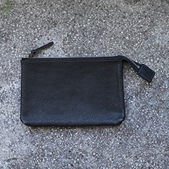 植物タンニンなめしの豚革ロングジップポーチ ブラック / T20107 Black