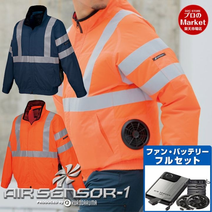ファン付き 高視認性安全服 258921 KURODARUMA フルセット サイドファン 電動ファン付きウェア 軽量 撥水 遮熱...