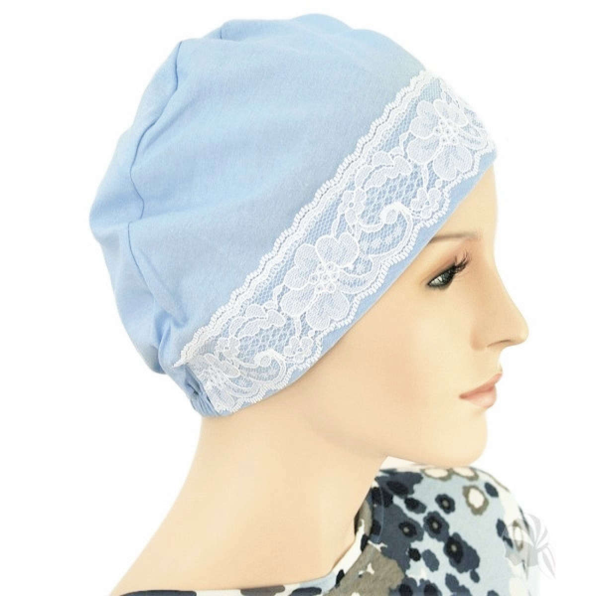 【抗がん剤治療】【医療用帽子】【ケア帽子】 レースキャップ:パウダーブルーレース