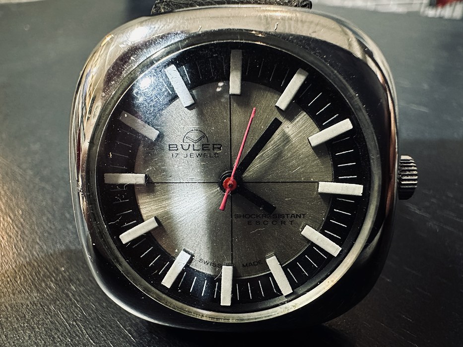 107616 腕時計 1970年代 BULER SWISS 手巻き 赤秒針 ショックレジスタンス