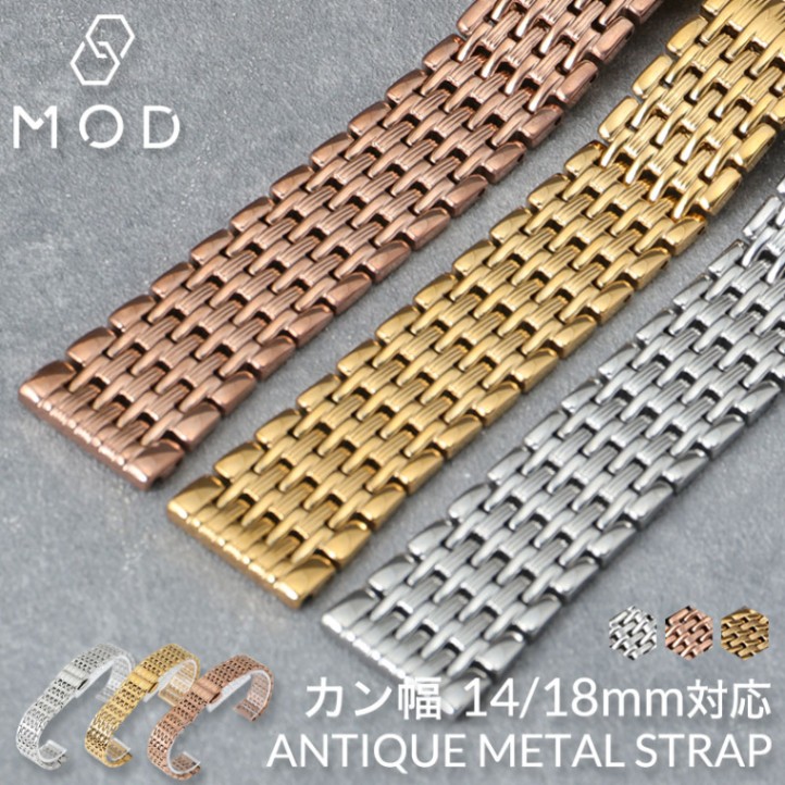 MOD アンティーク メタル ストラップ 腕時計 ベルト 時計 バンド ステンレスベルト 金属 ベルト メタルバンド レディース ...