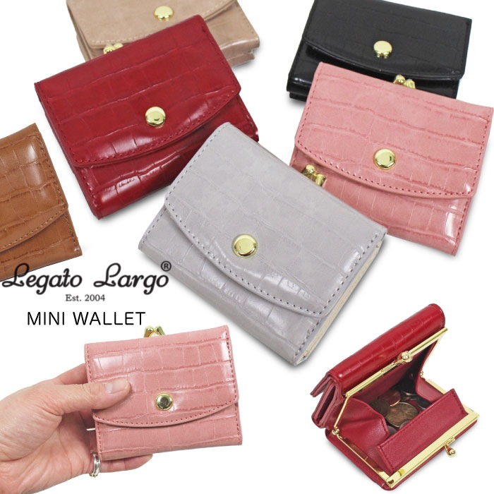 Legato Largo レガートラルゴ クロコ型押し ガマ口3つ折リ財布 ミニ財布 三つ折り ミニウォレット コンパクト 小さい...