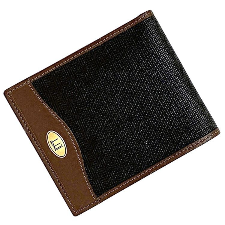 ダンヒル 二つ折り 財布 ec-22046 ブラック ブラウン サッチェル 美品 PVC レザー 中古 dunhill ワンポイン...