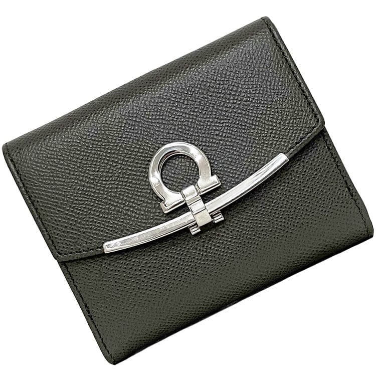 サルヴァトーレ フェラガモ 二つ折り 財布 ec-23228 グレー ガンチーニ JL-22 C877 美品 レザー 中古 Sal...