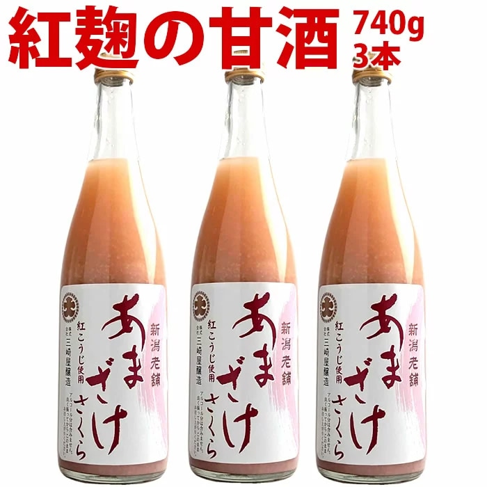 (欠品中)甘酒 話題の 赤い甘酒 紅麹甘酒 3本入り ストレートあまざけ桜 紅麹甘酒 740g×3本 赤い 甘酒 無添加 砂糖不使...