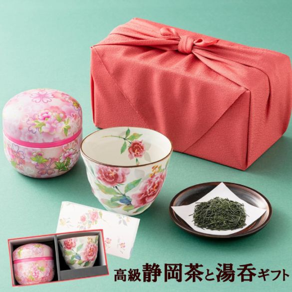 ギフト 静岡茶に美濃焼湯呑みのセット★花かいろう 風呂敷ギフト