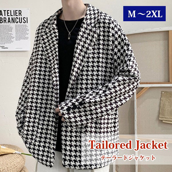 【セール】即納 安い メンズ 千鳥格子柄 テーラードジャケット チェック柄 通気性 伸縮性 ゆったり ルーズ シルエット カジュア...