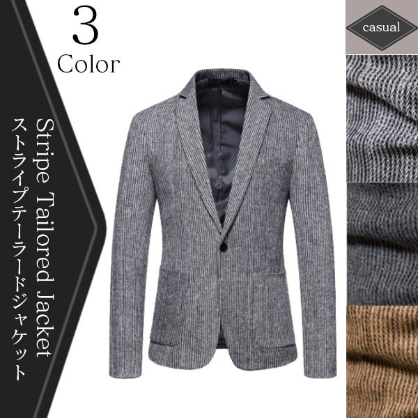 【セール】即納 安い テーラードジャケット コート メンズ ストライプ ウール スタンダード ブレザー 1つボタン 紳士服 高級感...